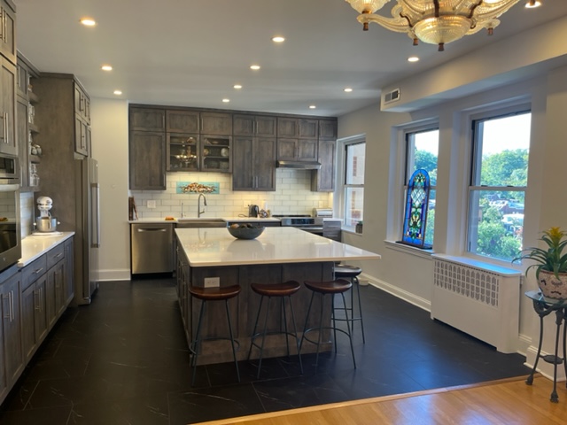 Still: see the grey pottery bowl in the middle of the “continent”? I bought it more than ten years ago, and it dwarfed everything it sat on until now. And the Italian tiles above the sink? 35 years ago, I bought them framed from Baltimore’s Turnover shop, and now finally they are set into the backsplash. I love the induction range, but made a mistake with the wall oven (should have gotten a model with cafe doors). And the 41 cabinets? All full.